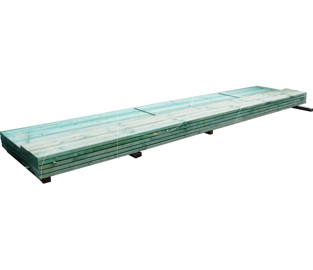 Keperplanken van massief vuren timmerhout die gedrenkt zijn met gezaagde afwerking. Andere lengtes verkrijgbaar op aanvraag.