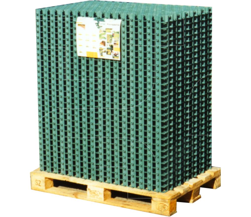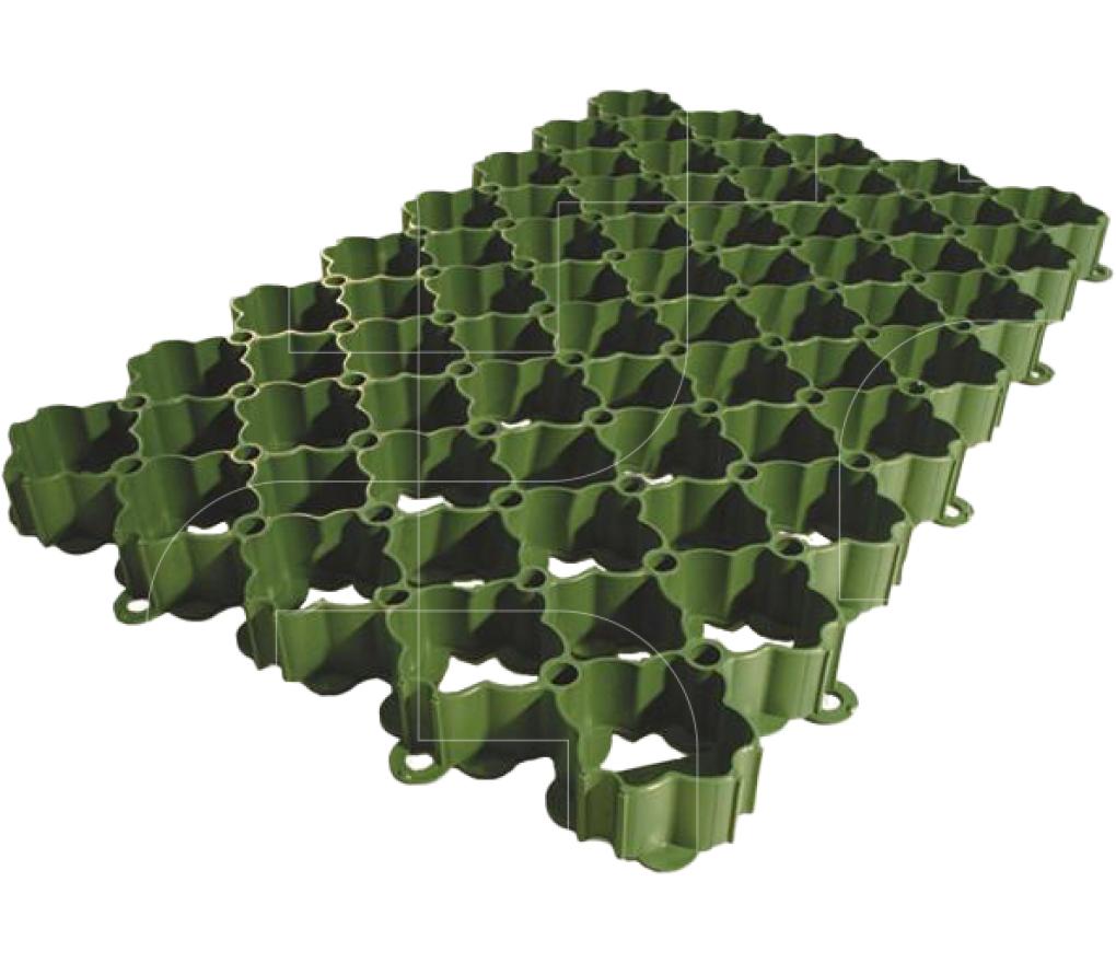 De grasdal is vervaardigd uit gerecycleerd high density polyethyleen. Celstructuur in ‘’Florentiner design’’ met omlopende stabilisatierand.
