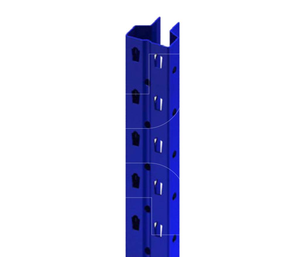 De flesvormige stijlen zijn om de 50 mm voorzien van perforaties om de liggers in te haken.