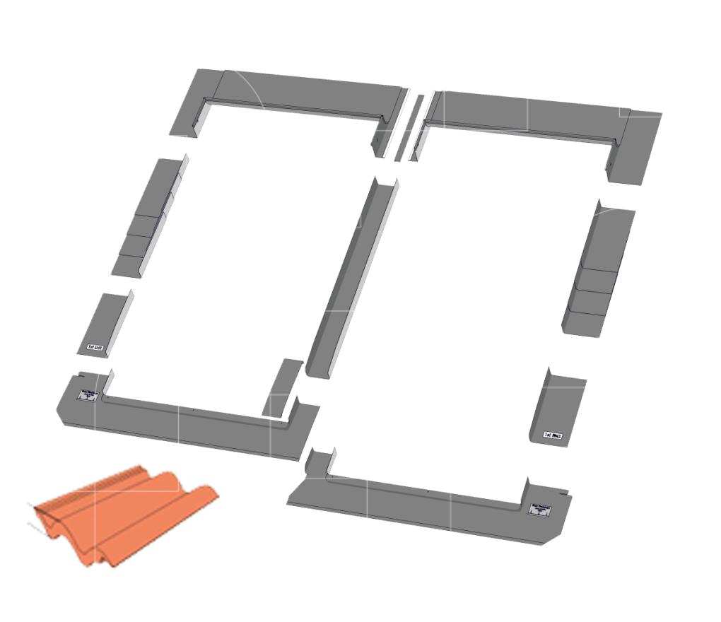 • Voor het koppelen van 4 dakramen icm dakpannen.