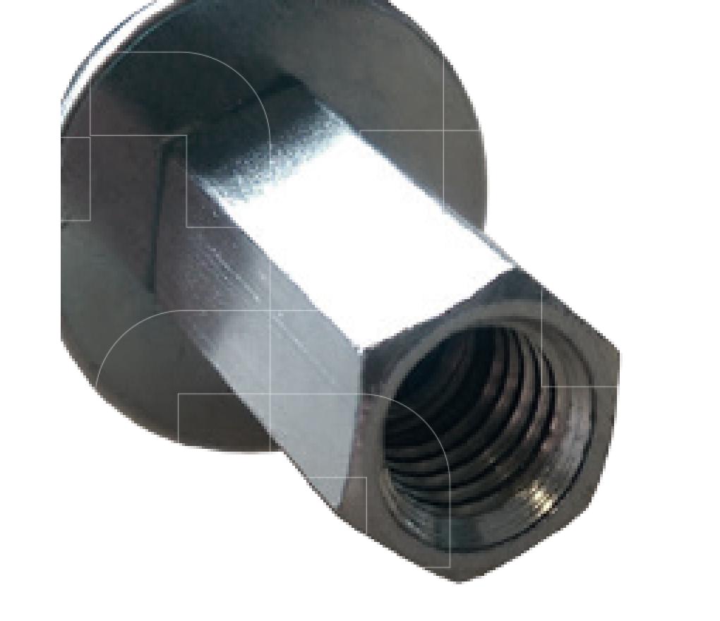 Betonschroef SB met dubbele M8 / M10 binnendraad, ETA goedkeuring voor toepassingen in gescheurd en ongescheurd beton en kanaalplaat. Geschikt voor beton, volle steen en kalkzandsteen.