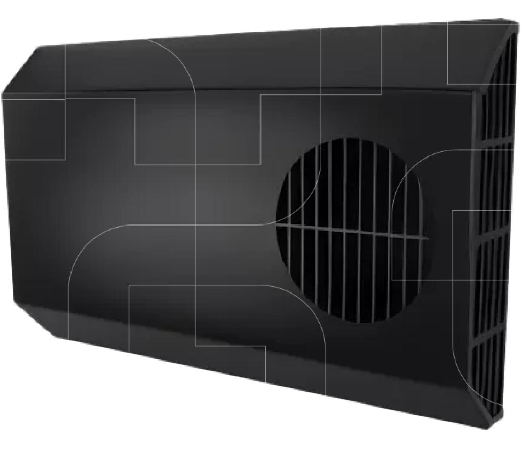 - Zijkanten: verse buitenlucht wordt aangezogen via de zijdelingse openingen