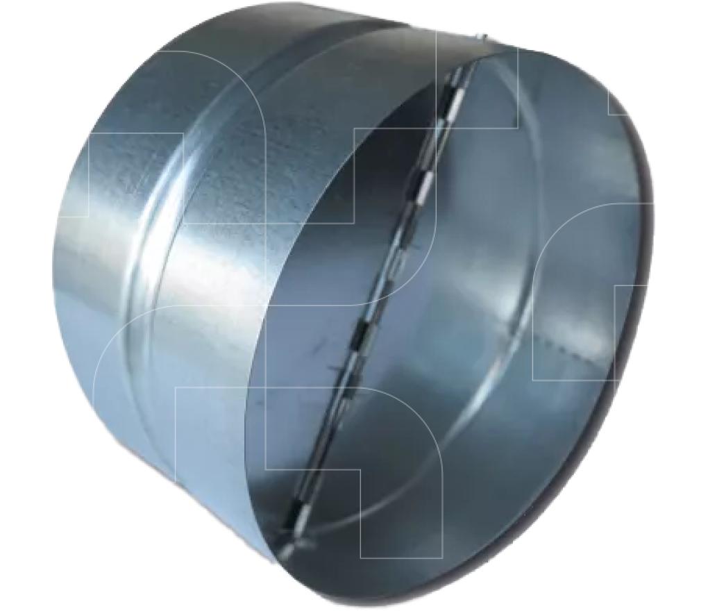 De terugslagklep heeft aluminium lamellen die de luchtstroom maar in één richting doorlaten.