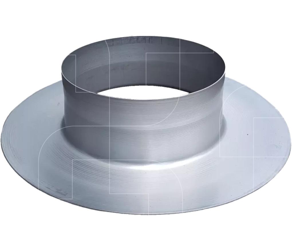 Aluminium plakplaat voor galva dubbelwandige dakdoorvoeren, de buitenpijp van de dakdoorvoer valt over de rand van de plakplaat.