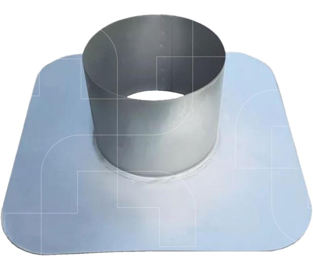 Plakplaat galva voor spiraalbuis mogelijk in combinatie met stormkraag.