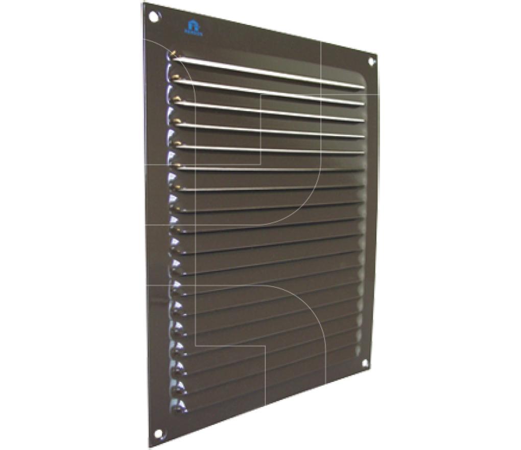 Schoepenrooster vervaardigd uit gestampte aluminium platen voor toe- en afvoer van lucht, geschikt voor opbouw.