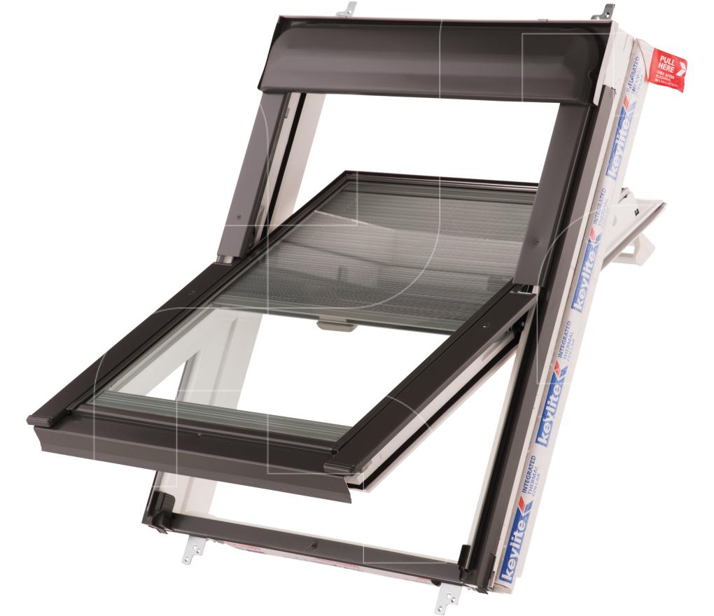 - Veelzijdig dakraam met centrale as, geschikt voor enkele of meervoudige toepassingen in ieder dak met een helling tussen de 15° - 90°