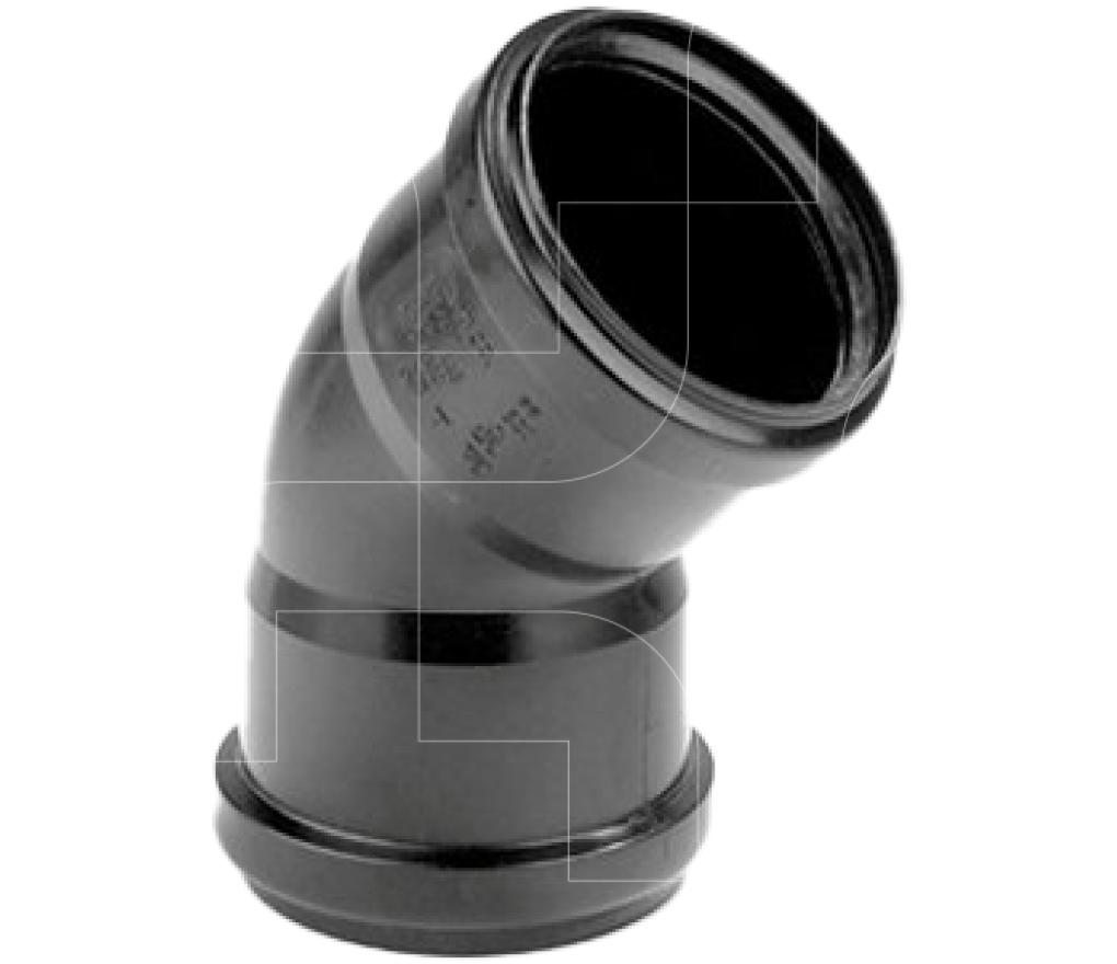PP bocht in de kleur zwart met 2x manchet uiteinde, voor het verbinden van 2 PP buizen of PVC afvoerbuizen.