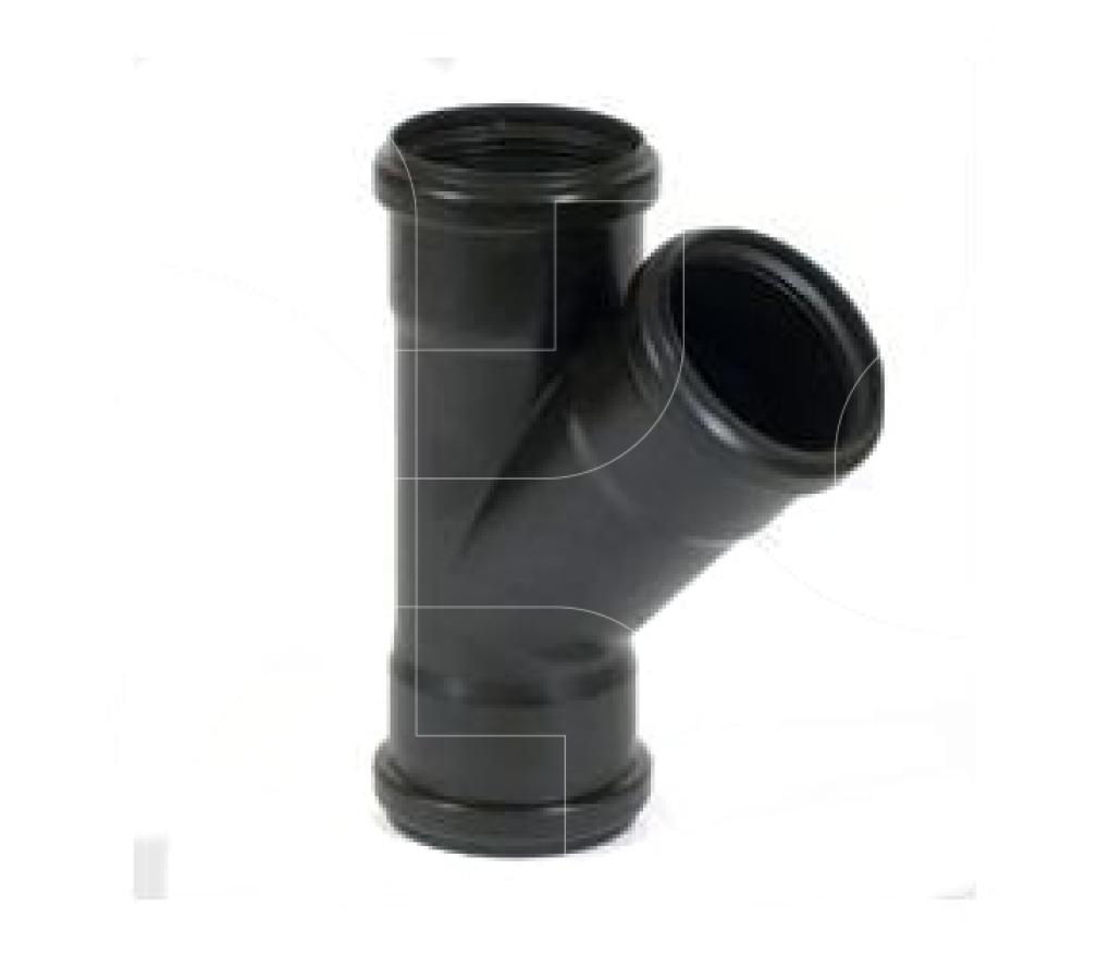PP verloop T-stuk zwart met aan 3 zijden een manchet aansluiting.