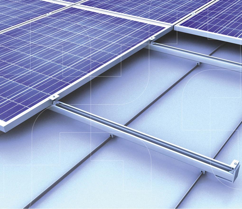 Klemsysteem éénlaags met staand gemonteerde zonnepanelen.