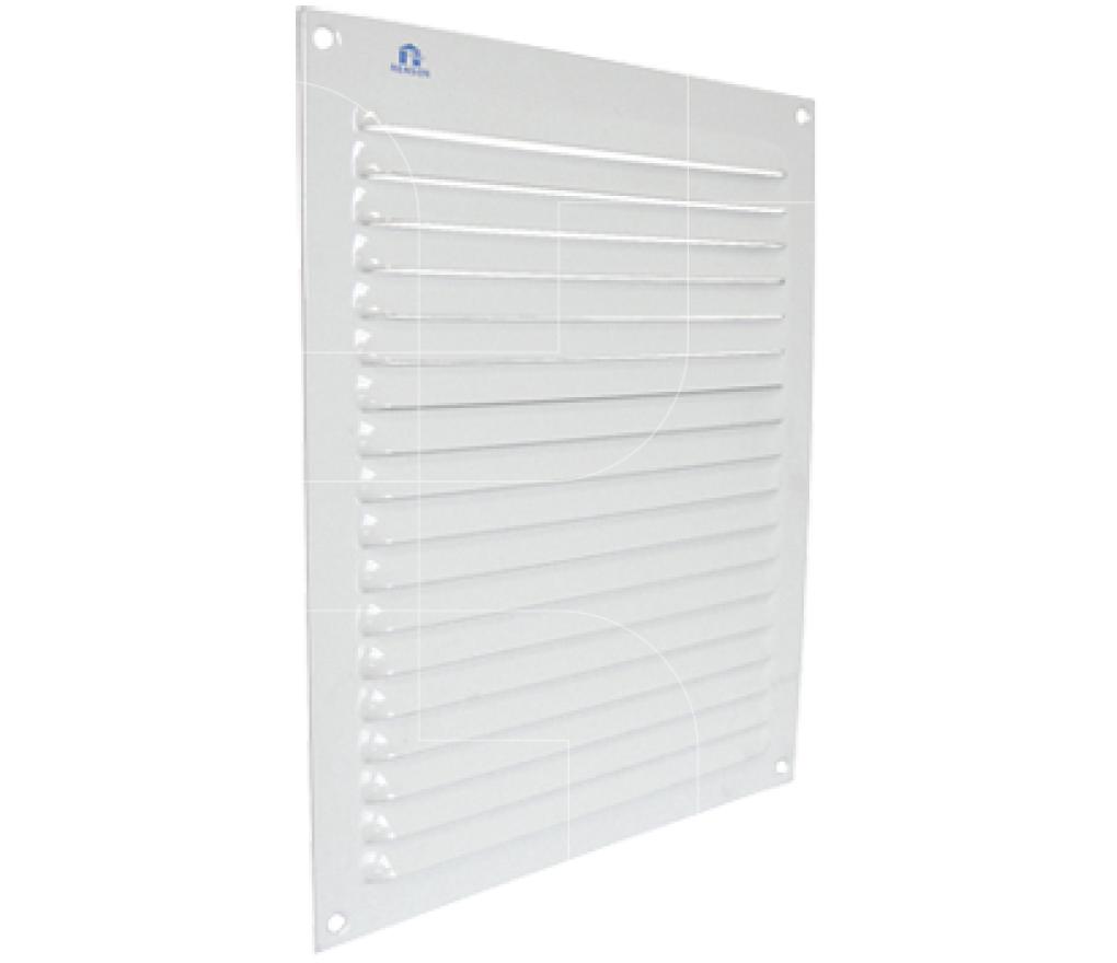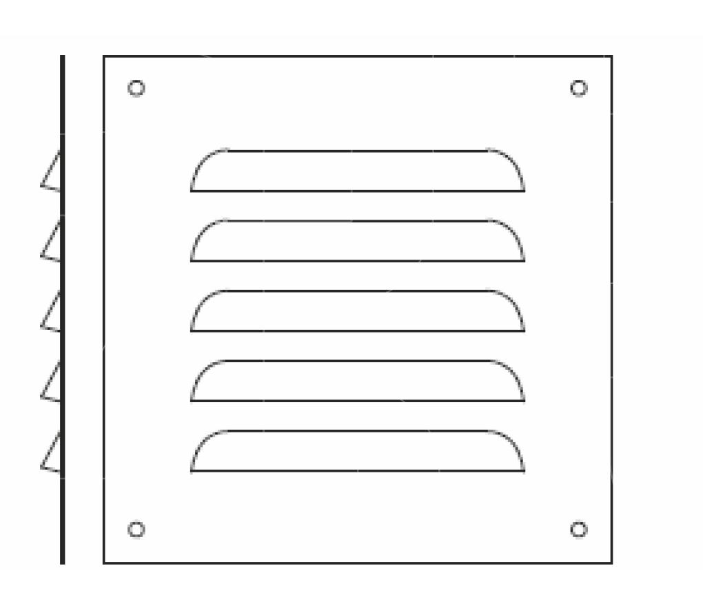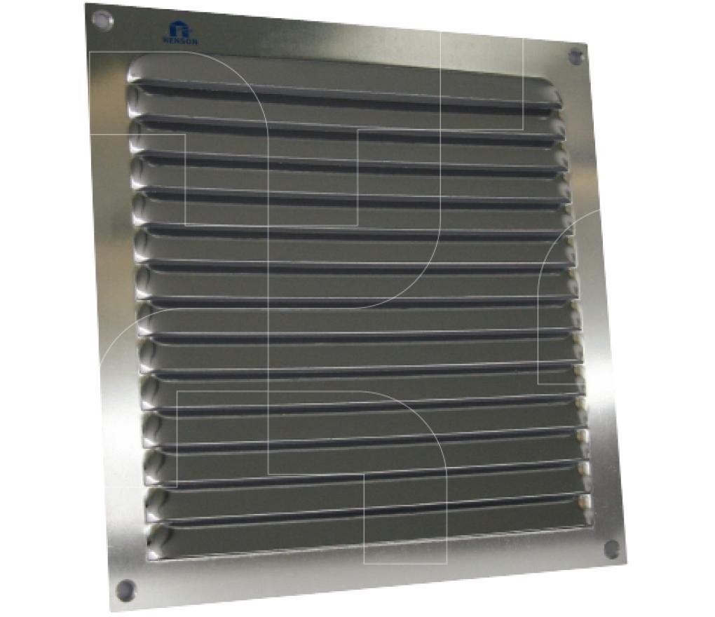 Aluminium schoepenrooster vlak voor diverse toepassingen zoals toevoer-, doorvoer- en afvoermogelijkheden, montage met schroeven en pluggen.