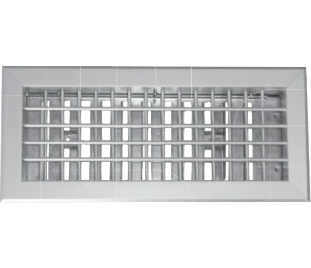 Kanaalrooster voor rechthoekige kanalen met debietregelaar en dubbele deflectie.