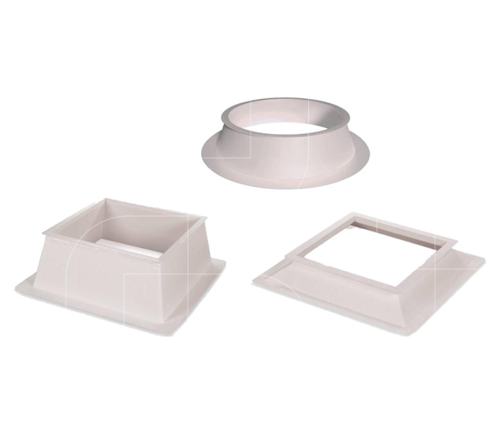 De Polyester composiet-opstanden zijn geschikt voor ramen naar keuze. Standaard pvc-raam, isolerend pvc raam EP of het superisolerende pvc-raam EP25. Voor ronde opstanden kan een rond polyester raam gebruikt worden. Op deze structuur wordt de lichtkoepel gemonteerd. Er is een Duits en een Benelux model, ze bestaan in schuine en rechte versies.