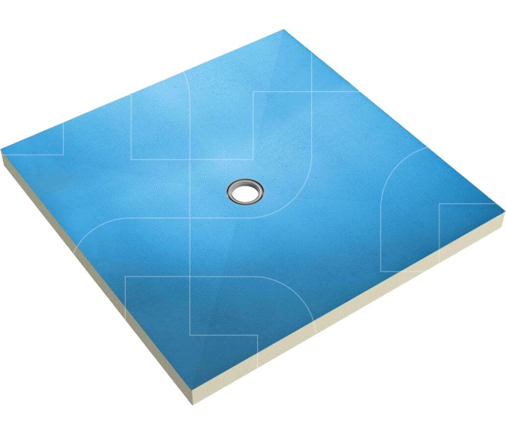 Een betrouwbare, stevige, voorgevormde en 100% waterdichte douchebodem bestaat uit een kern gemaakt van CFK-vrij, hard, geëxtrudeerd polystyreenschuim en een waterbestendige, vezelversterkte coating.