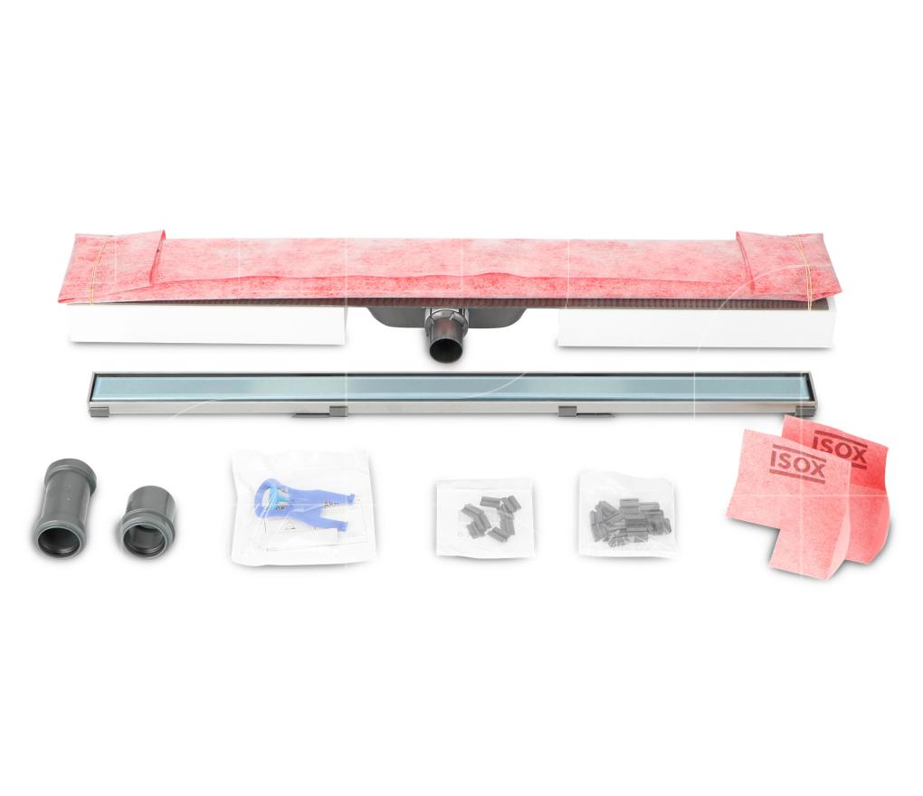 De douchegoot in ABS met voorverlijmde afdichtingsdoek. Voor een drempelloze inloopdouche. Kern gemaakt uit polyethyleen kunststof. De ABS douchegoot is in één stuk gegoten en heel licht en slagvast. Deze is erg geschikt voor renovatie en nieuwbouw.