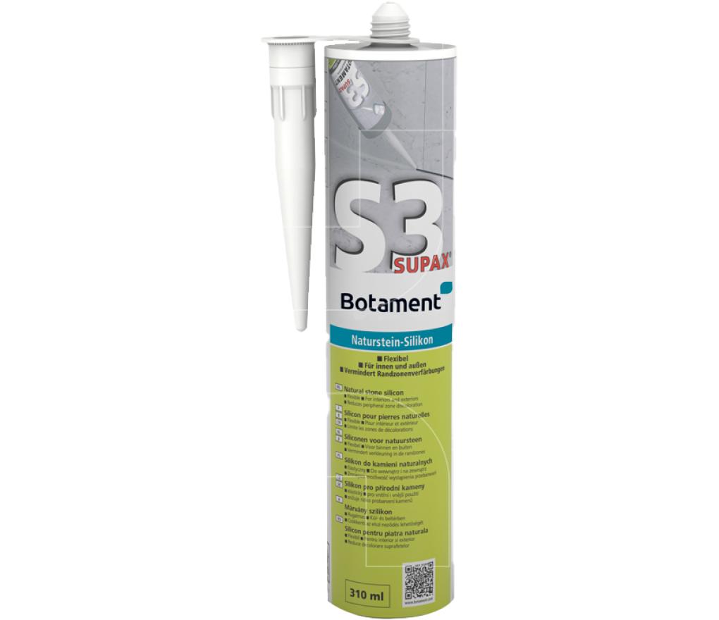 S3 SUPAX is een elastische voegkit voor het opvullen van dilatatie- en aansluitvoegen in natuursteenbekledingen, in permanent natte ruimtes, evenals in zwembaden en op balkons en terrassen. Na uitharding is S3 SUPAX zeer goed bestand tegen heet water, UV-straling en in de handel verkrijgbare reinigingsmiddelen.