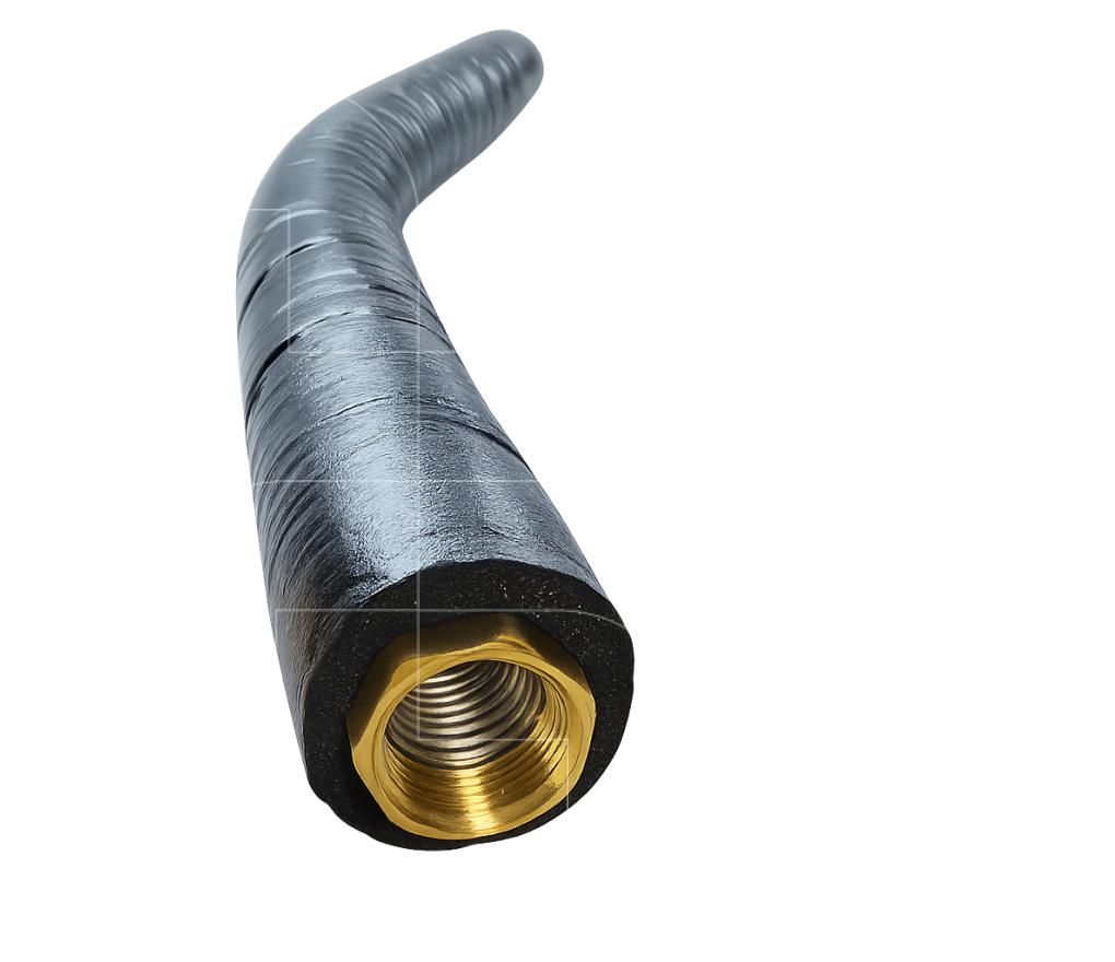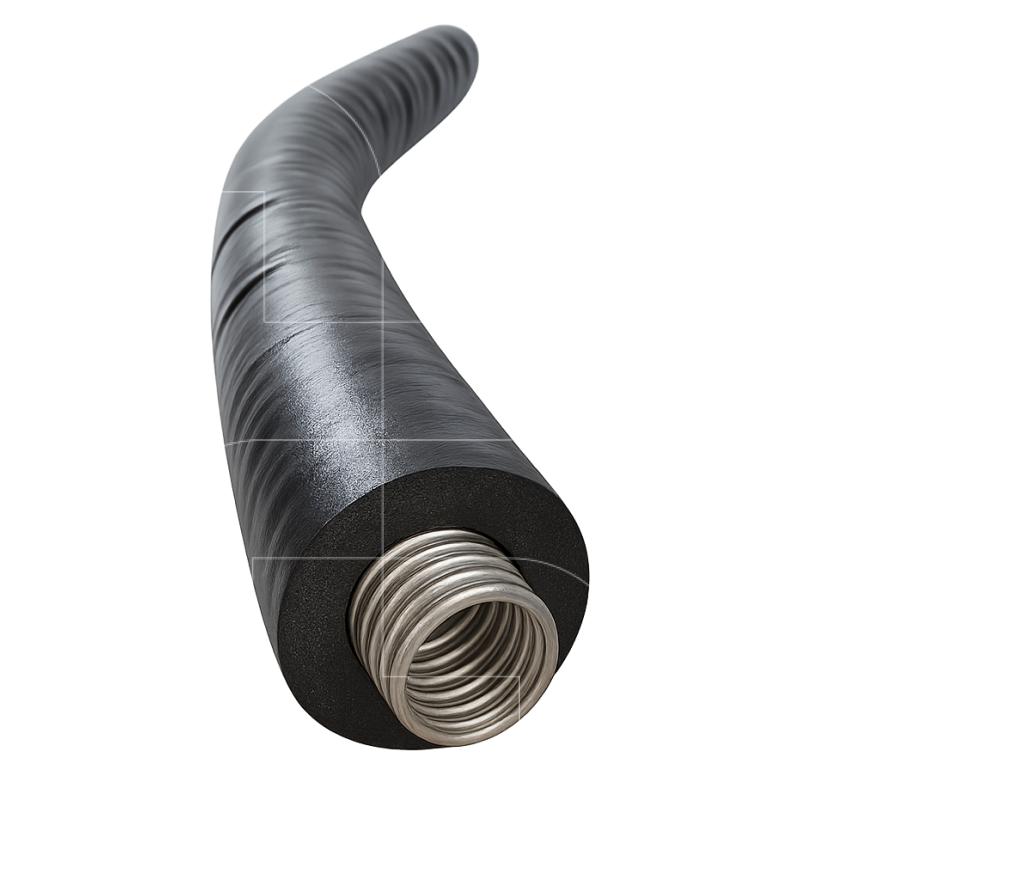 Deze flexibele hydraulische leiding is opgebouwd uit een gegolfde roestvrijstalen (RVS 304L) binnenbuis, omgeven door een thermische isolatielaag van 13 mm en een duurzame PVC-beschermmantel. Dankzij de PLT-CSST technologie (Pliable Corrugated Stainless Steel Tubing) combineert deze leiding een hoge mechanische sterkte met een uitzonderlijke flexibiliteit en eenvoudige installatie, zonder de nood aan las- of persverbindingen.