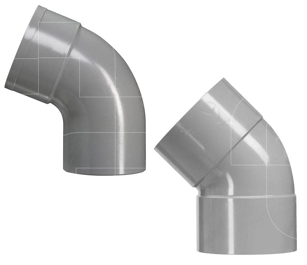 Een "PVC sanitair bocht 45° is een type PVC buisfitting dat wordt gebruikt in sanitairleidingen voor het maken van een hoek van 45 graden.