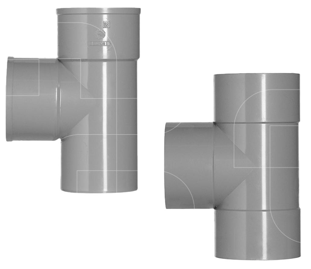 Een PVC sanitair T-stuk van 90 graden met een mof-mof-spie of mof-mof-mof aansluiting is een fitting die wordt gebruikt in sanitair- en afvoersystemen om een T-verbinding te maken met een hoek van 90 graden.